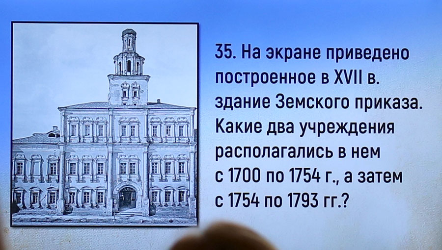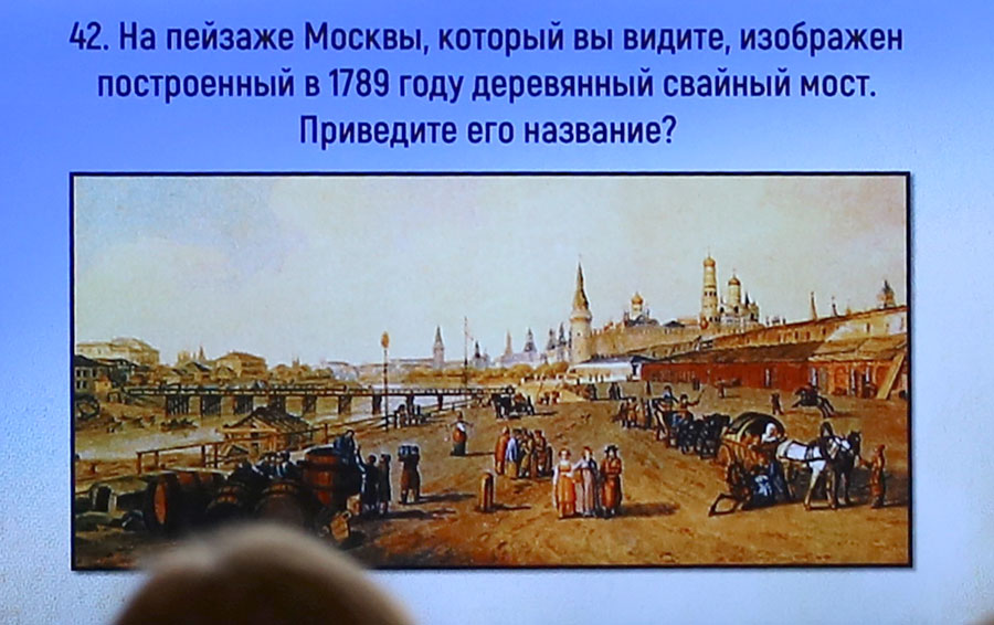 Команды должны были знать: название открытой в 1763 г. в Москве первой больницы для горожан; сколько соборов, монастырей и храмов располагалось в Московском Кремле в конце XVIII в.; название государственного органа, заведовавшего в Москве финансовым управлением губернии; какая коллегия ведала таможенными сборами в Москве; в каком московском монастыре в XVIII в. было открыто социальное учреждение для умалишенных и многое другое.