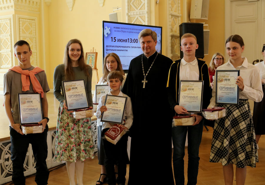 15 июня 2024 г. в демонстрационном зале ГУМа состоялась заключительная десятая отборочная игра брейн-ринг, в которой приняли участие команды Центрального викариатства: «Елоховцы» (команда Богоявленского кафедрального собора в Елохове), «Обыденцы» (команда храма пророка Божия Илии в Обыденском переулке), «Наследники Сретенки» (команда Сретенского ставропигиального мужского монастыря), «Мира» (команда храма святителя Николая Мирликийского в Покровском), «IAKIMANKA» (команда храма мученика Иоанна Воина на Якиманке) и «Эврика» (команда храма Успения Пресвятой Богородицы на Могильцах).