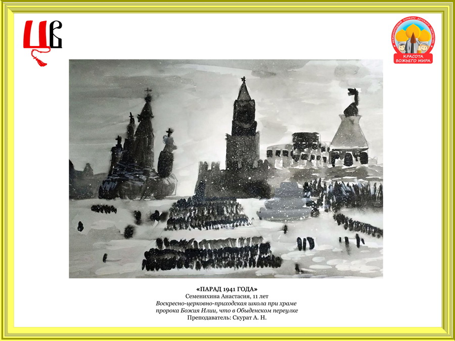 В номинации «Основная тематика» в возрастной группе 9–12 лет художественная работа Семенихиной Анастасии «Парад 1941 года» заняла первое место, художественная работа Гуровой Ульяны «Сестра милосердия» — третье место; в возрастной группе 13–17 лет художественная работа Мияльной Екатерины «Из блокады к Победе» заняла первое место, художественная работа Курноскиной Ольги «Родина мать зовёт» — второе место.