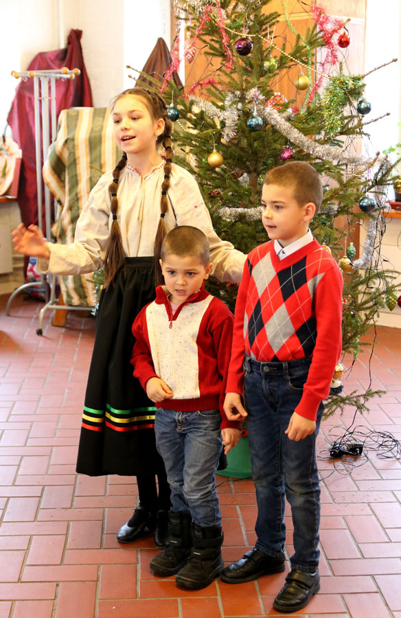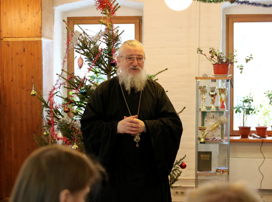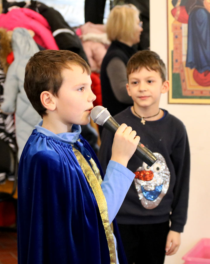 Прежде всего дети и их родители радостно пропели тропарь праздника Рождества Христова. Затем к нимобратился с приветственным словом духовник воскресной школы протоиерей Николай Скурат. Он сердечно поздравил всех со светлым праздником Рождества Христова, а также передал приветствие и благословение настоятеля храма отца Максима.