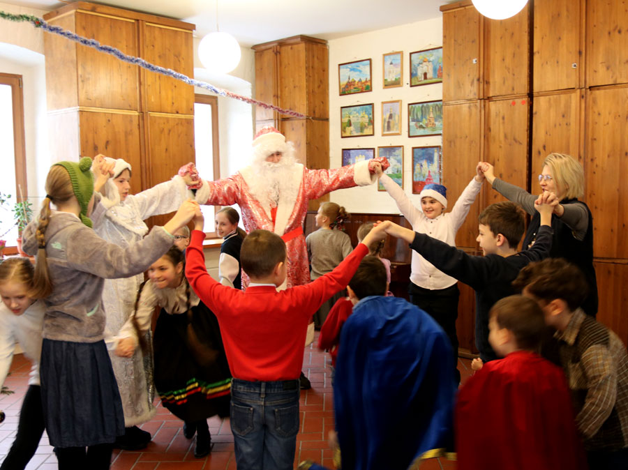 Приходская ёлка была подготовлена и проведена силами преподавателей, учеников и их родителей.