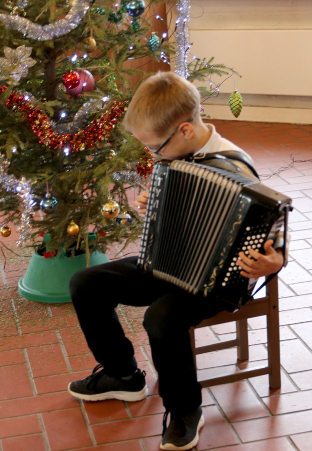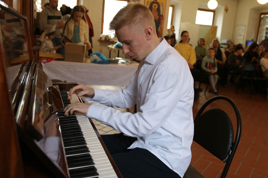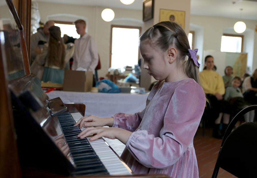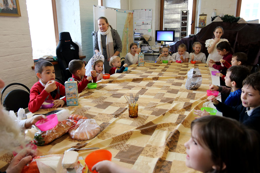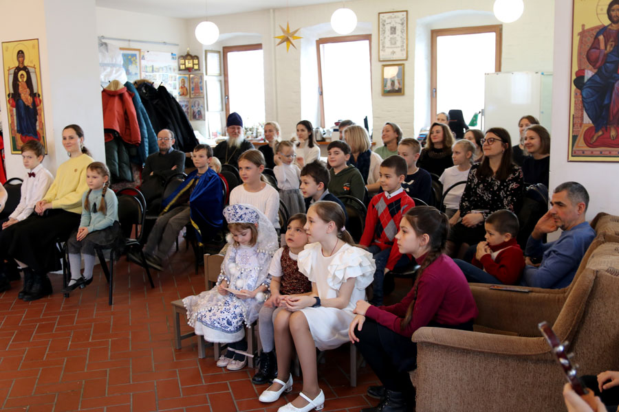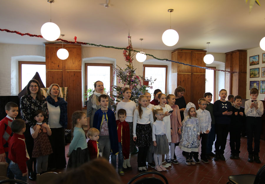Детский хор воскресной школы под управлением А. В. Акшаевой исполнил рождественские колядки. В музыкально-инструментальном отделении праздника дети играли на различных музыкальных инструментах (нафортепиано, домбре, баяне), пели колядки и читали стихи. Зрители увидели более двадцати детских выступлений. В заключение собравшиеся исполнили песни «Дорога добра» и «Зима» под аккомпанемент И. Г. Черемухина.