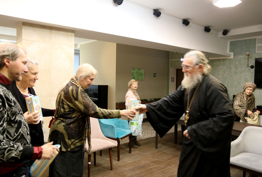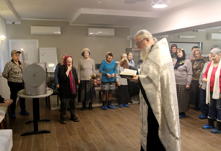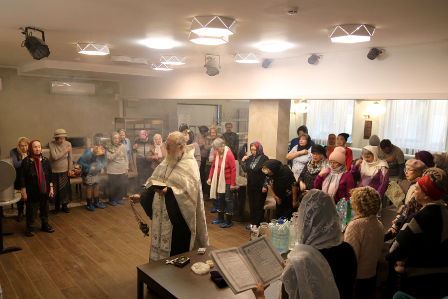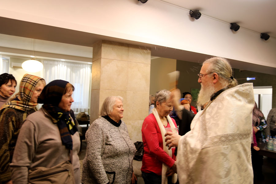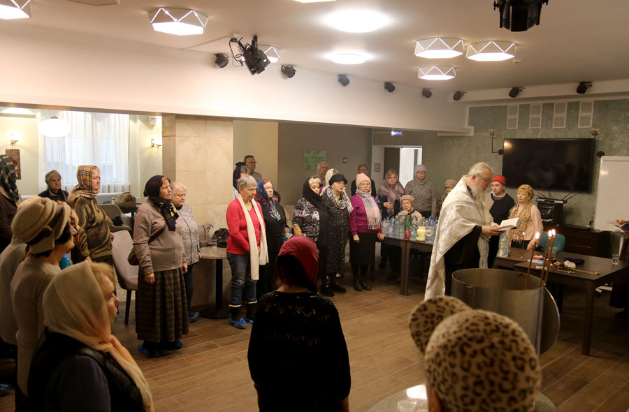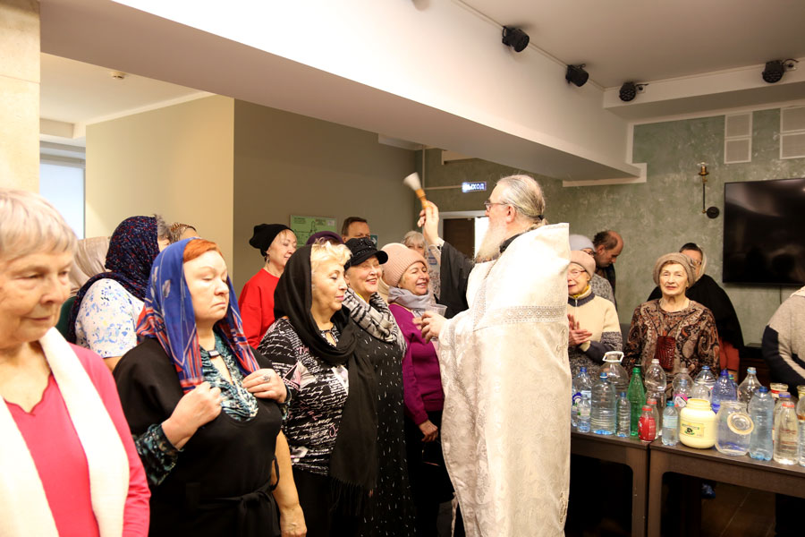 В Крещенский сочельник после Божественной литургии отец Николай и взрослые выпускники Обыденской воскресной школы снова посетили центр московского долголетия «Проспект Вернадского», чтобы освятить там воду. Об этом просили инвалиды и малоподвижные пенсионеры, которые не могли самостоятельно добраться до ближайшего храма по болезни и из-за гололедицы. Перед началом общей молитвы протоиерей Николай, окормляющий этот центр, провел краткую беседу-напоминание о празднике Крещения Господня и о значении водоосвящения. После неё немощные пожилые люди и инвалиды имели возможность помолиться на чине великогоосвящения воды. В богослужении приняли участие певчие из волонтерского приходского хора воскресной школы для взрослых.
