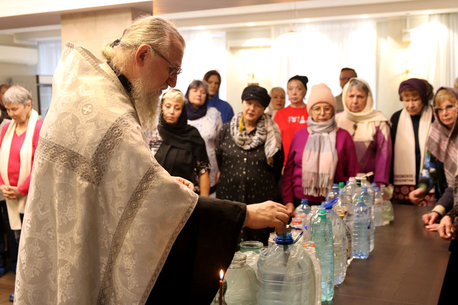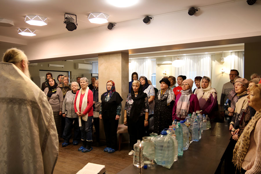 Великое водоосвящение совершалось по благословению настоятеля Илие-Обыденского храма протоиерея Максима Шевцова в рамках социального сотрудничества между приходом храма святого пророка Божия Илии в Обыденском переулке и центром московского долголетия «Проспект Вернадского» (директор А. С. Афонин).