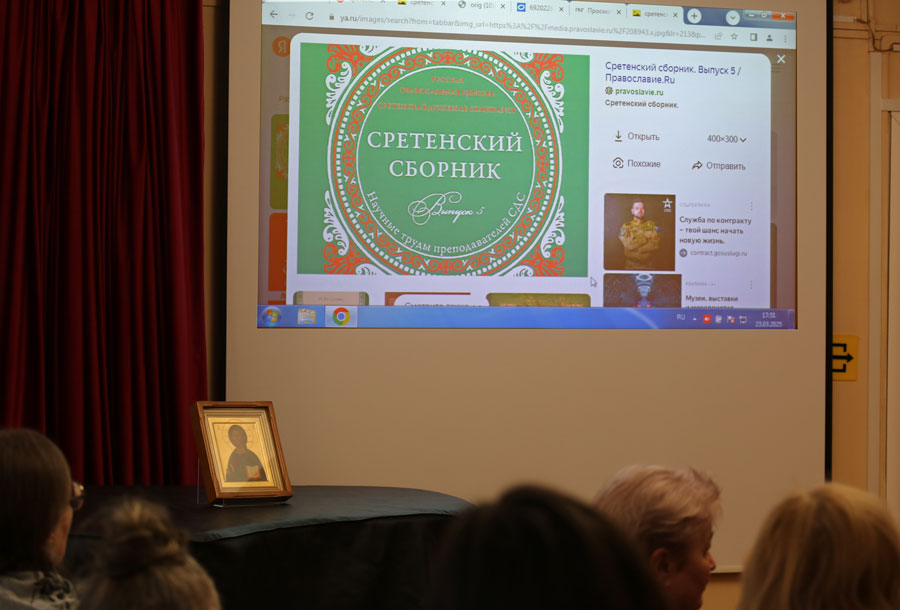 Лекция была посвящена научным изданиям Сретенской духовной академии. Особенно подробно докладчик остановился на старейшем корпоративном журнале Сретенской духовной академии — «Сретенском сборнике». Его авторами являются только преподаватели академии, ведущие научно-исследовательскую деятельность. В конце лекции батюшка Николай ответил на вопросы собравшихся.