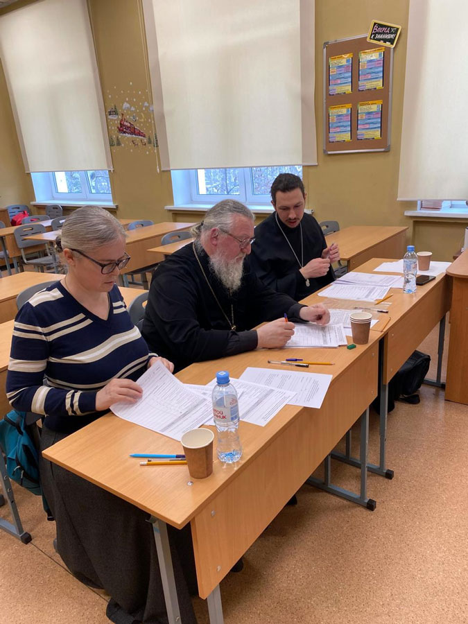 По благословению митрополита Воскресенского Григория из числа ответственных за работу с общеобразовательными школами в храмах Центрального викариатства были созданы экспертные комиссии для проверки работ участников Олимпиады. От нашего прихода в экспертных комиссиях трудились ответственный за сотрудничество со школой № 1529 протоиерей Николай Скурат и общественный методист Т. В. Качала. Они приняли участие в организации очных защит олимпиадных работ для возрастной категории «1–4-е классы».