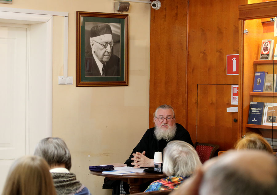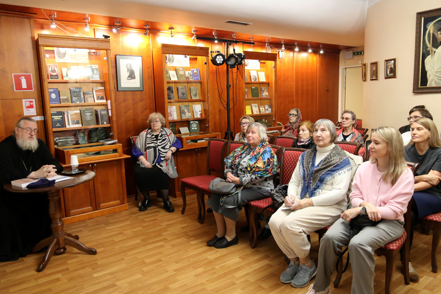 Преподаватель взрослых групп нашей воскресной школы протоиерей Николай Скурат прочитал лекцию в Научной библиотеке и мемориальном музее «Дом А. Ф. Лосева». Встреча была посвящена духовной стороне жизни Татьяны Николаевны Протасьевой (1904–1987; с 1927 г. — инокини Татьяны, с 1974 г. — монахини Фамари), исследовательницы древних рукописей и первопечатных книг, прихожанки и певчей Илие-Обыденского храма. В конце лекции батюшка ответил на вопросы собравшихся.
