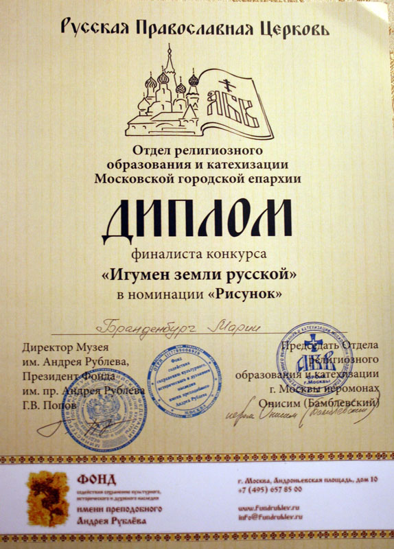 Подведены итоги московского конкурса детского творчества «Игумен Земли Русской», длившегося с октября 2013 года и приуроченного к 700-летию со дня рождения преподобного Сергия Радонежского. Конкурс был организован Отделом религиозного образования и катехизации г. Москвы.