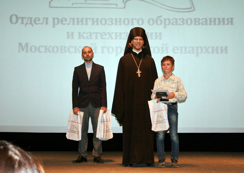 Затем прошла церемония награждения. Грамоты и памятные подарки детям вручал председатель ОРОиК иеромонах Онисим (Бамблевский). Представитель нашей воскресной церковно-приходской школы, юный прихожанин Илие-Обыденского храма Саша Кондратьев, занявший 1 место в номинации «Проекты и исследования», был награжден грамотой и ценным подарком за проект «Жизнь и деятельность преподобного Сергия Радонежского».