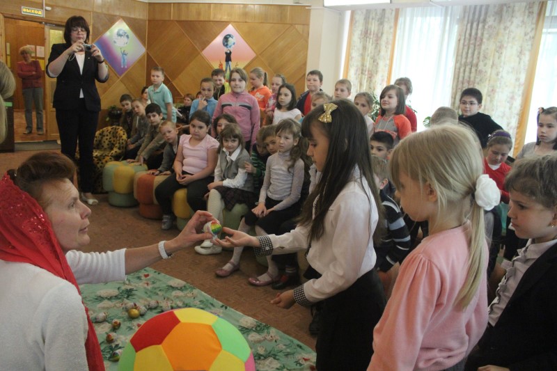 Праздник прошел в помещении библиотеки №180. Наши артисты показали веселый и поучительный спектакль «Как молодец счастье искал» и предложили различные народные игры и викторины. В завершение встречи все зрители — ученики и учителя — и сами артисты с удовольствием приняли участие в любимой пасхальной забаве — катании яиц.