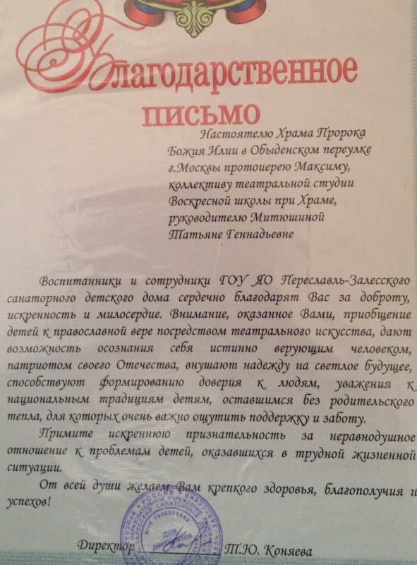 Как уже повелось, зрителями обыденцев стали в этот день люди разных возрастов. Прежде всего, это, конечно, местные воспитанники — от самых маленьких до подростков, а также их воспитатели и педагоги. Но с не меньшим интересом за происходящим на сцене следили присутствовавшие на представлении насельники и трудники Никитского мужского монастыря, духовно и материально поддерживающего санаторный детский дом. Именно по приглашению руководства этой обители театральная студия Обыденского храма совершает свои поездки в Переславль-Залесский.