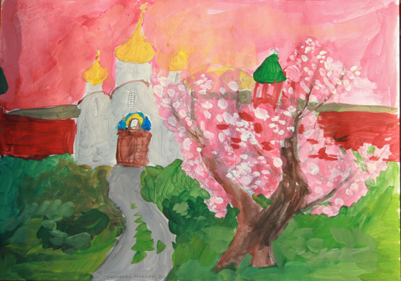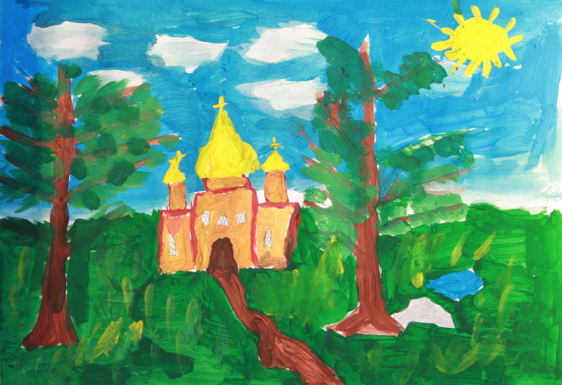 Выставка детских рисунков, участвовавших в конкурсе, экспонируется в актовом зале на 4 этаже воскресной школы.