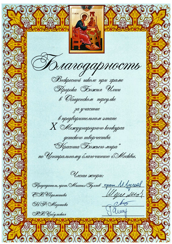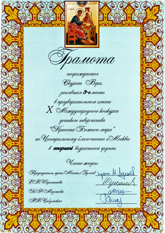 Наша воскресная школа представила на конкурс Центрального благочиния 10 рисунков, все участники получили памятные грамоты. Поздравляем Веру, чья работа «Бабушка и внук» заняла 3-е место в старшей возрастной группе в Центральном благочинии!