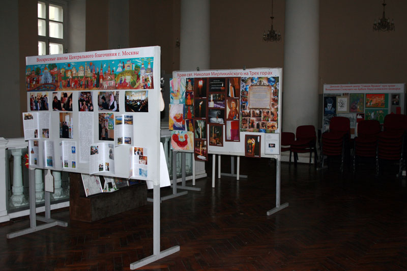 На выставке были представлены детские творческие работы и фотоматериалы, рассказывающие об основных событиях в жизни школ Центрального благочиния в этом учебном году.