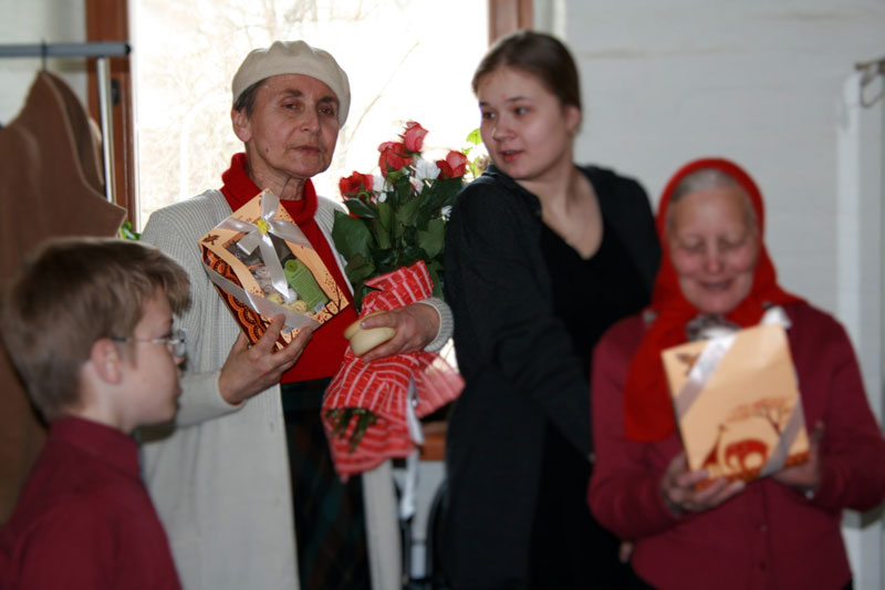 В неделю жен-мироносиц настоятель Илие-Обыденского храма протоиерей Максим Шевцов, руководство воскресной школы, учащиеся и педагоги поздравили преподавателя детской учебной группы Е.А. Толмачеву с юбилеем.