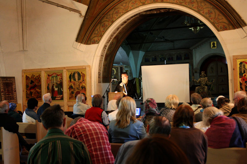 Клирик Илие-Обыденского храма, преподаватель взрослых групп и духовник воскресной церковно-приходской школы протоиерей Николай Скурат выступил с докладом «Московская церковь святого пророка Божия Илии, слывущая Обыденной, в годы Великой Отечественной войны 1941-1945 гг.». В сообщении на фоне общемосковской помощи Церкви защитникам Родины была освещена большая деятельность духовенства и общины Илие-Обыденского храма во всемерном содействии великому подвигу воинов нашего Отечества. В докладе было показано, что верующие москвичи в годы Великой Отечественной войны самоотверженно служили Богу и ближнему и своими молитвами и жертвами много сделали для приближения Дня Победы.