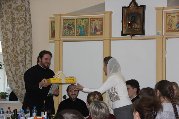 Преподобный Максим Исповедник является святым покровителем настоятеля нашего храма протоиерея Максима Шевцова. В этот праздничный день ученики, педагоги и руководство воскресной школы нашего прихода после Божественной литургии поздравили отца настоятеля с днем Ангела. Ребята преподнесли отцу Максиму букеты цветов и специально приготовленные для этого случая подарки, в том числе и сладкие.