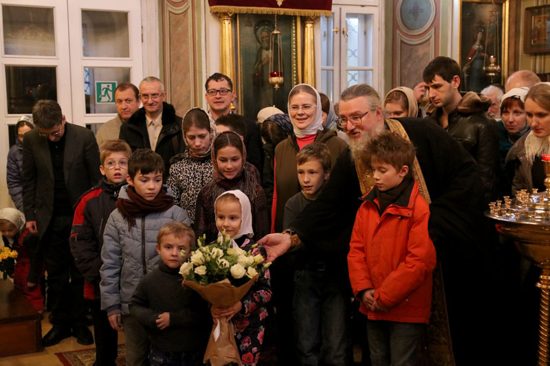 Собравшиеся на службу духовные чада и близкие настоятеля, сотрудники прихода и прихожане тепло присоединились к поздравлениям воскресной школы и лично сказали отцу Максиму много добрых слов.