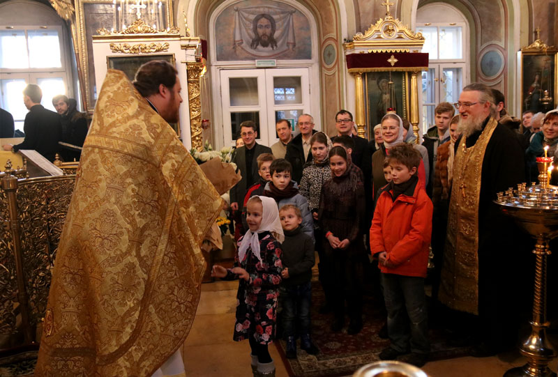 Вечером после рабочего дня и по окончании уставного богослужения в праздник святого преподобного Максима Исповедника взрослые учащиеся воскресной церковно-приходской школы поздравили отца настоятеля с днем памяти его святого покровителя и тезоименитством.
