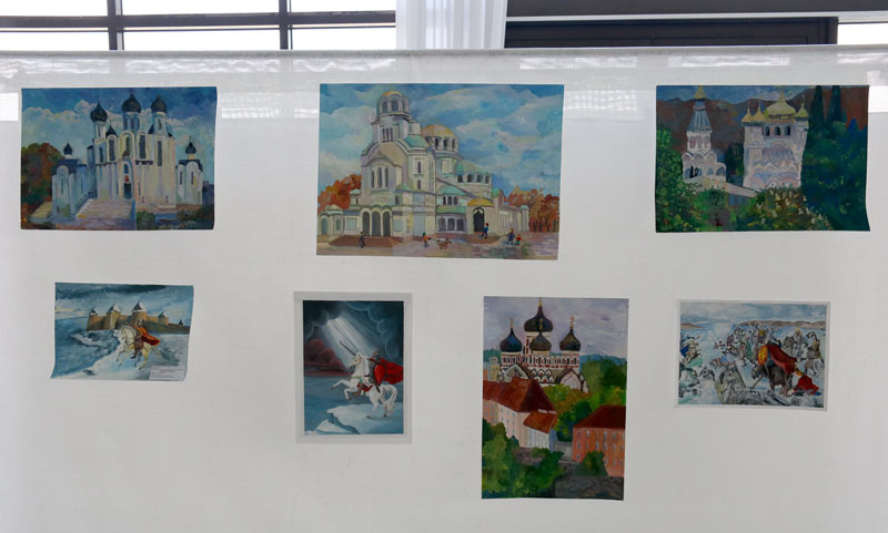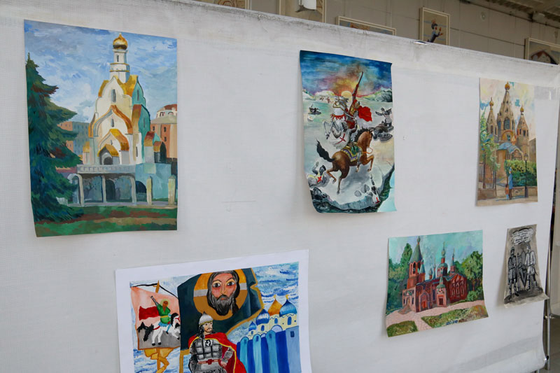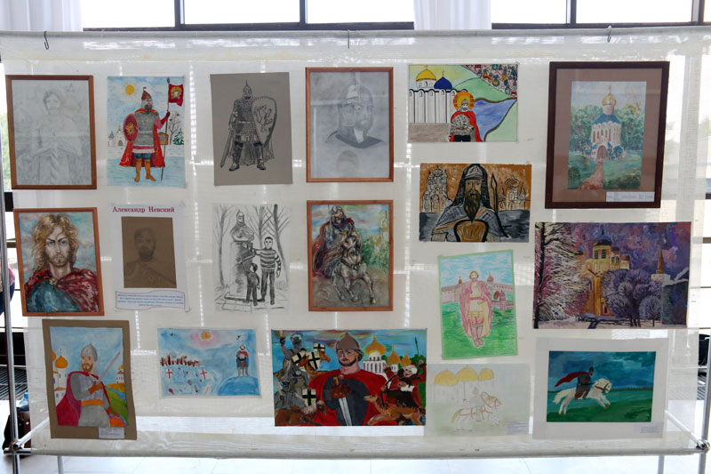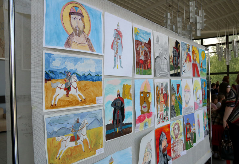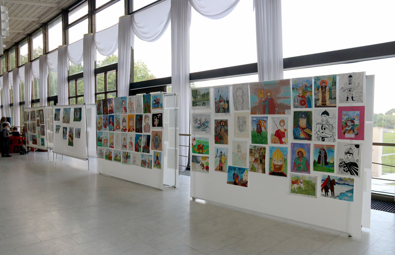 В фойе была организована выставка лучших художественных работ участников Московского городского конкурса детского творчества «Александр Невский — имя России». В этом конкурсе участвовали рисунки двух учащихся Илие-Обыденской детской воскресной школы Полины Качалиной и Марии Пекарской, выполненные под руководством педагога Марии Валерьевны Судаковой. Работа Полины «Святой князь Александр Невский» была представлена на выставке.