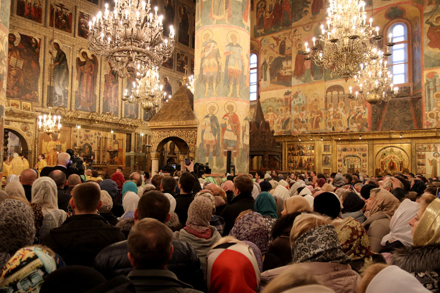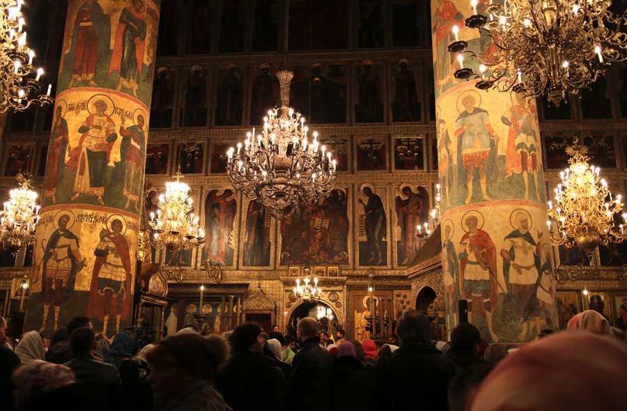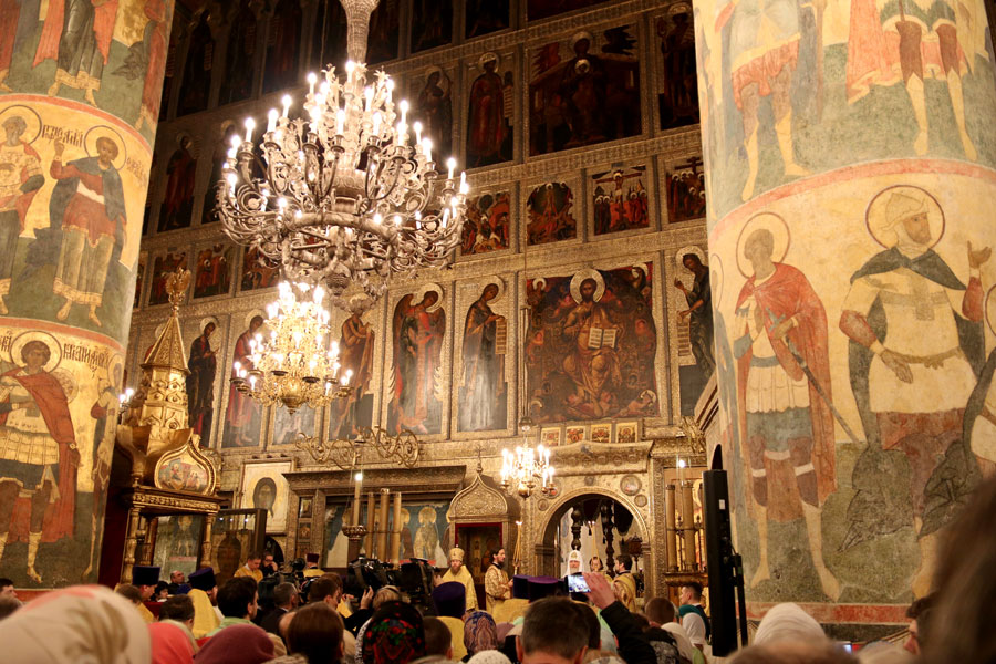 На службе в Успенском соборе