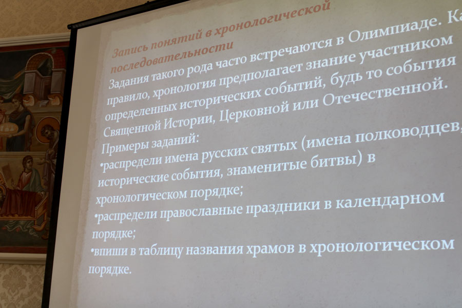 Православный Свято-Тихоновский гуманитарный университет (ПСТГУ) организовал семинар для педагогов, чьи учащиеся стали победителями и призерами регионального тура олимпиады. Мероприятие провела кандидат педагогических наук, председатель центральной методической комиссии олимпиады, заместитель декана педагогического факультета ПСТГУ по научной работе Антонина Агеева. В ходе семинара рассматривались типы базовых заданий, методика составления, особенности подготовки детей к работе с ними. После обсуждения учителям были вручены сертификаты и методические сборники, содержащие задания прошлых лет.