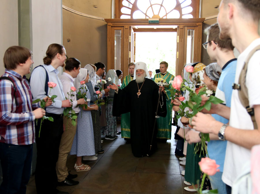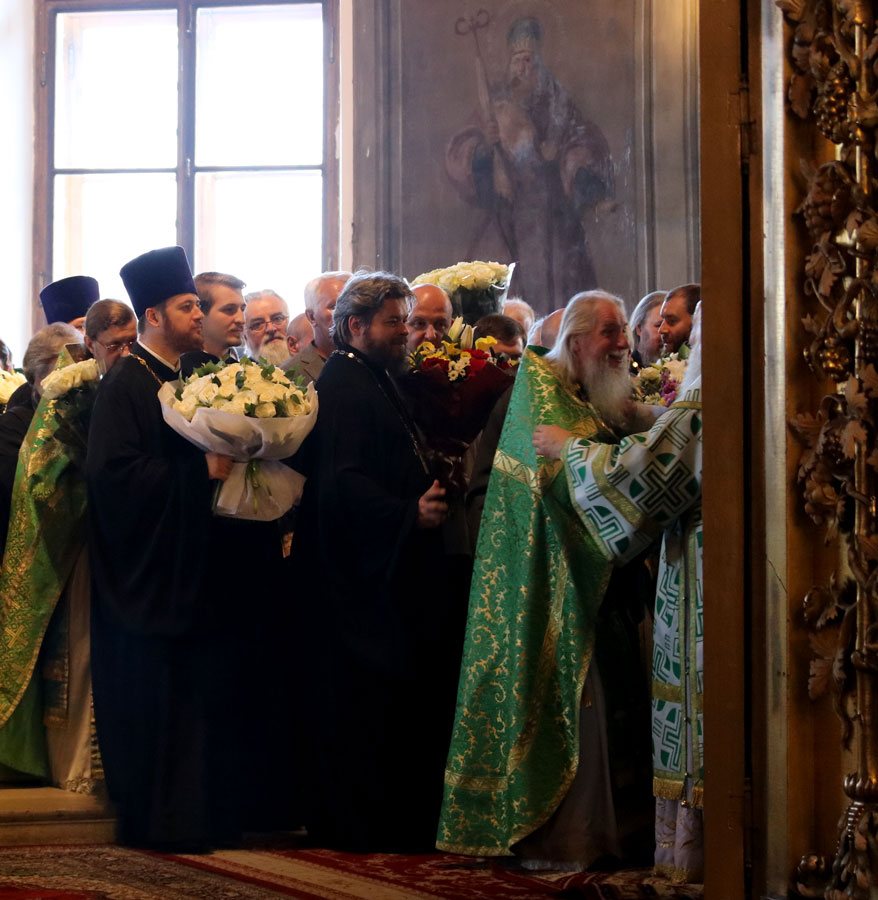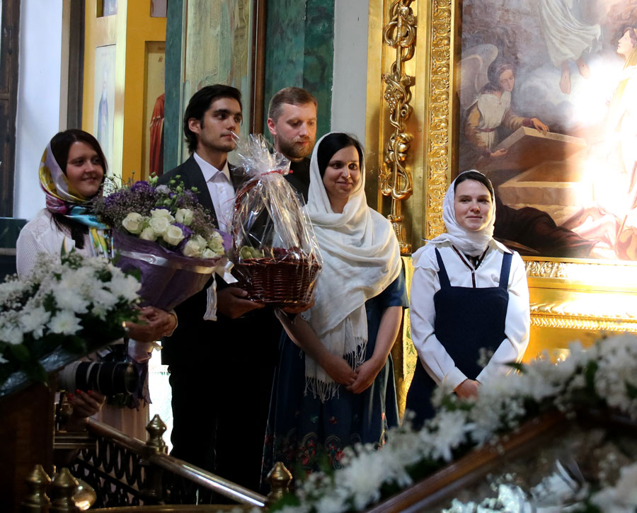 По окончании богослужения молодежь Центрального викариатства поздравила первого викария Святейшего Патриарха с днем его небесного покровителя и пожелала владыке митрополиту многих лет жизни.