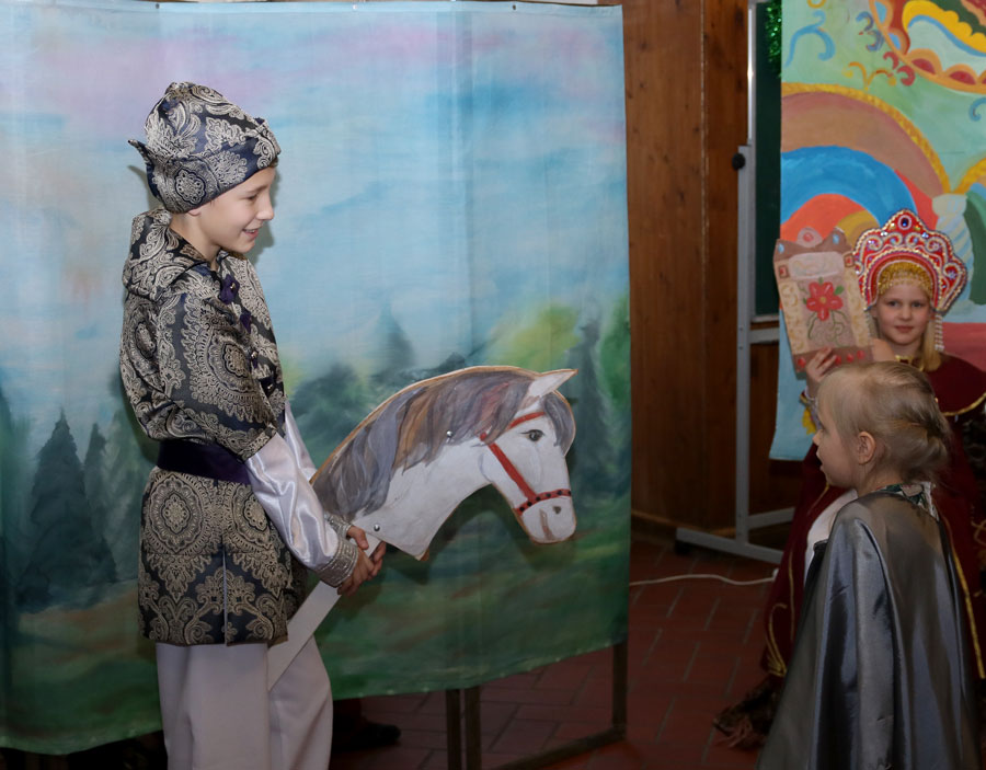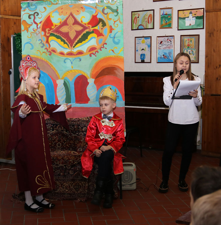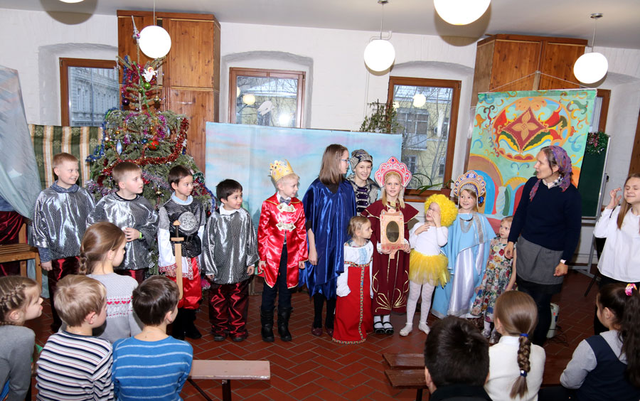 Затем началась музыкально-вокальная часть праздника. Дети играли на различных музыкальных инструментах, пели песни и читали стихи. Для тех, кто не смог прийти на приходскую рождественскую елку, учащиеся воскресной школы показали спектакль по «Сказке о мертвой царевне и о семи богатырях» А.С Пушкина (режиссер-постановщик – педагог Т.Н. Семенова).
