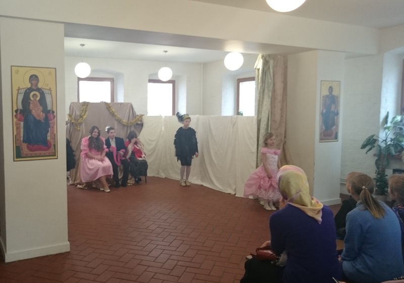 Гостей принимали учащиеся нашей воскресной школы. Юные артисты из театральной студии «Маленький театр» показали детям из дома-интерната спектакль по замечательной сказке Г. Х. Андерсена «Снежная королева», вызвавший неподдельные интерес и радость у зрителей.