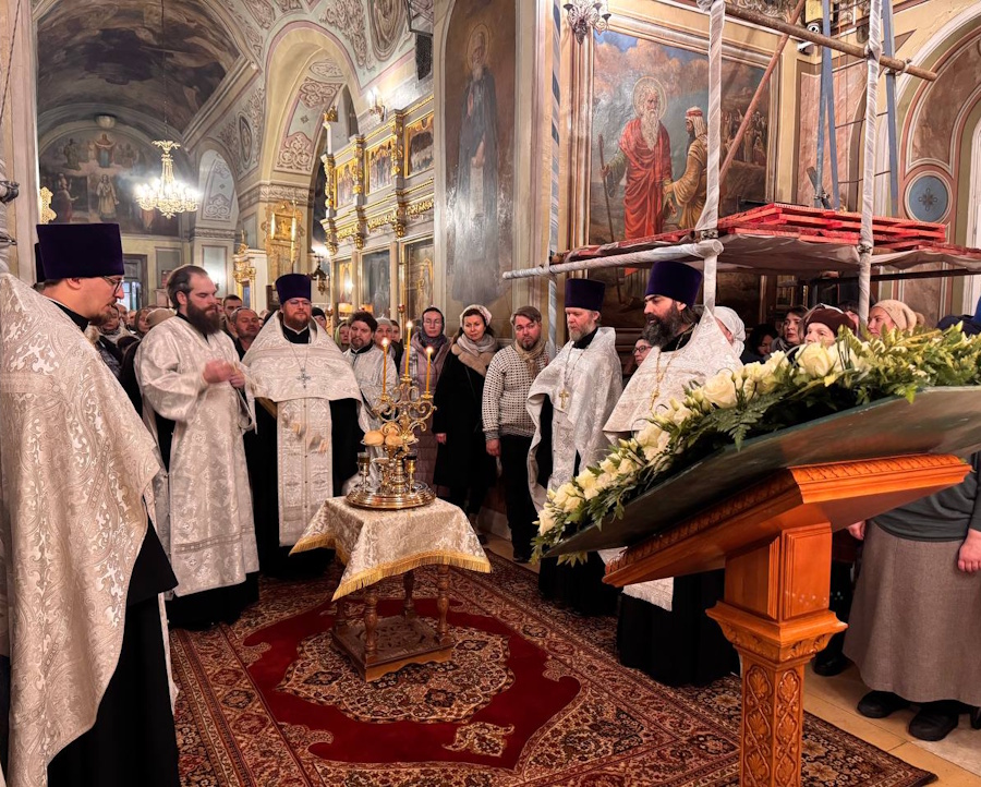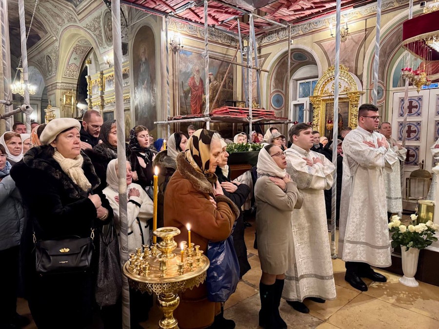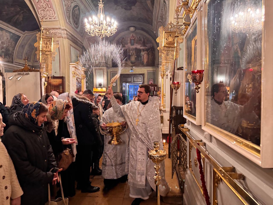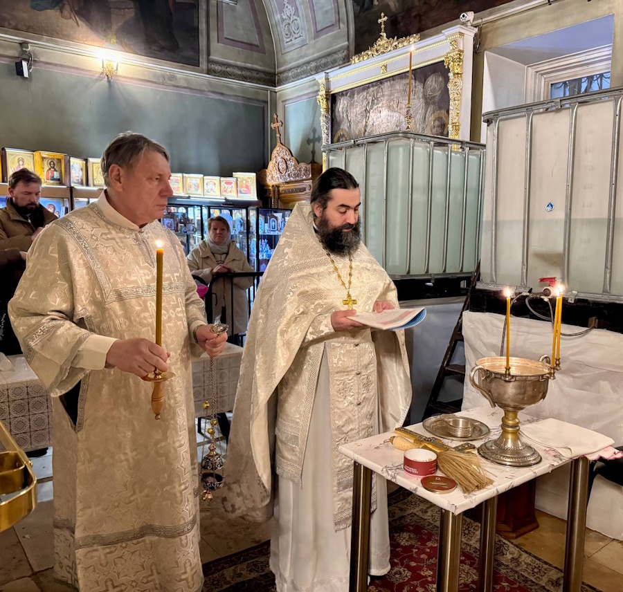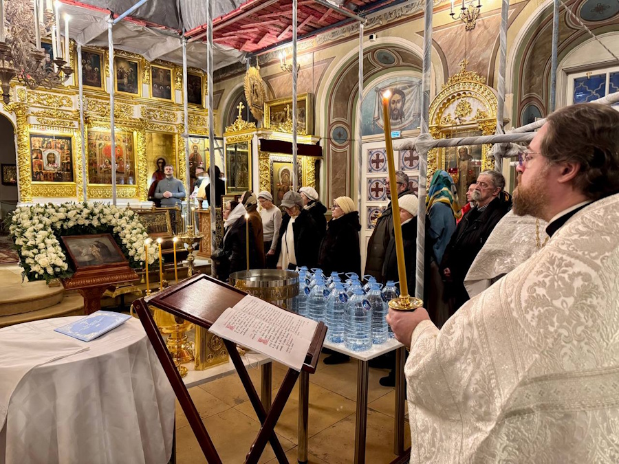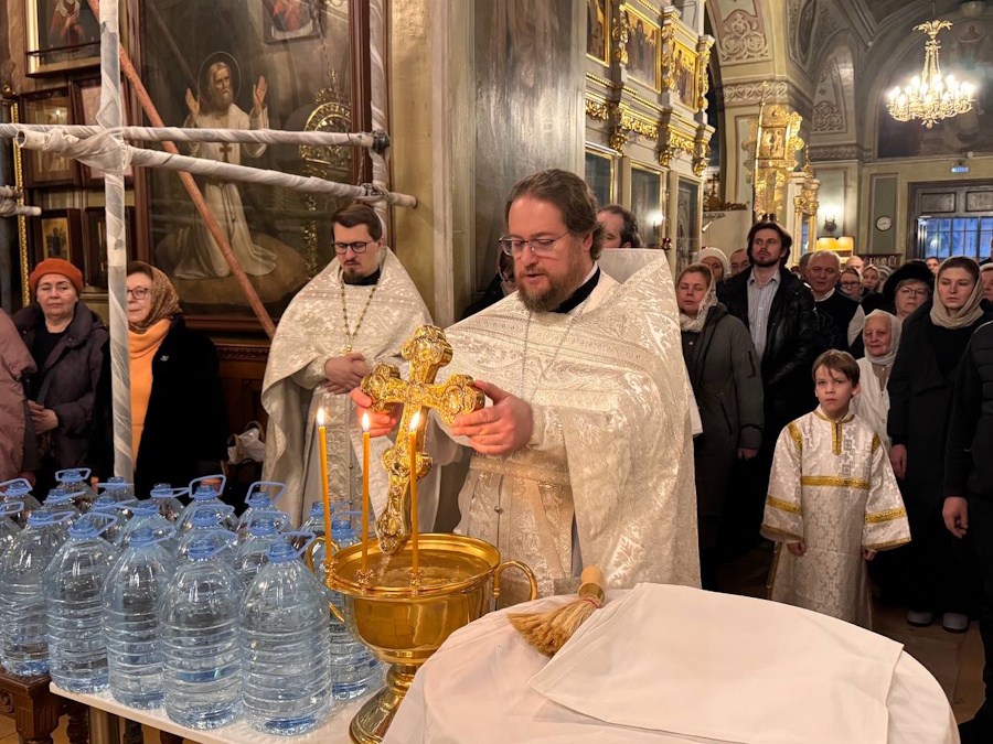 Вечером прошло торжественное всенощное бдение, состоявшее из великого повечерия с литией и утрени. В день праздника Крещения Господня были совершены две Божественные литургии свт. Василия Великого. Обе литургии завершились чином великого освящения воды.