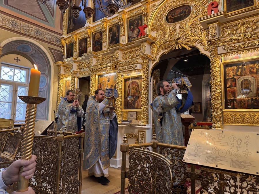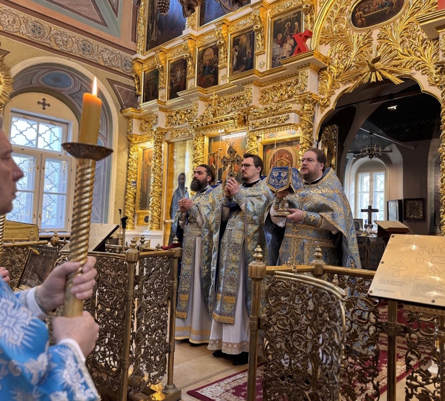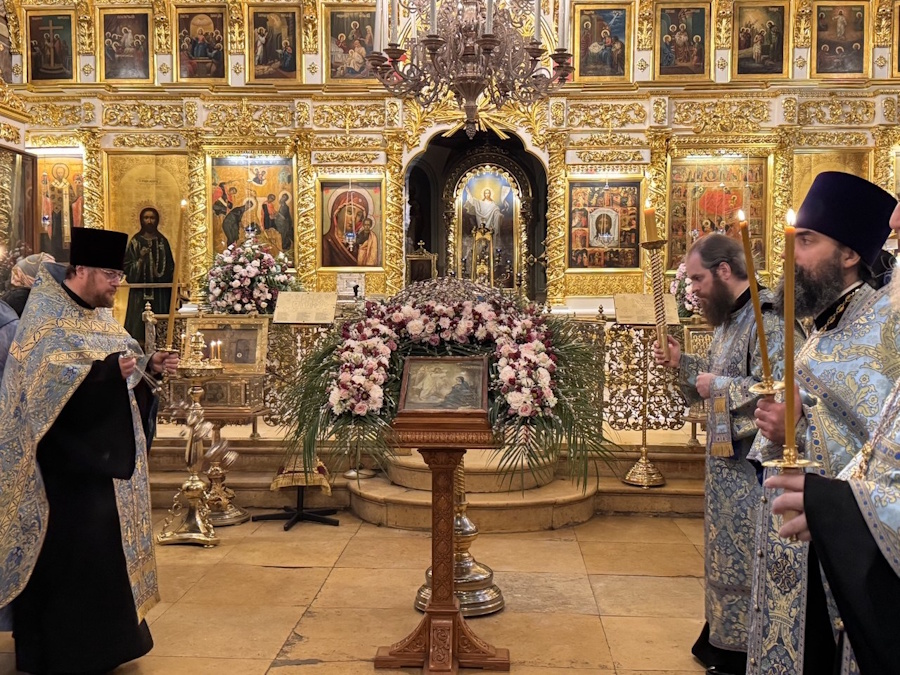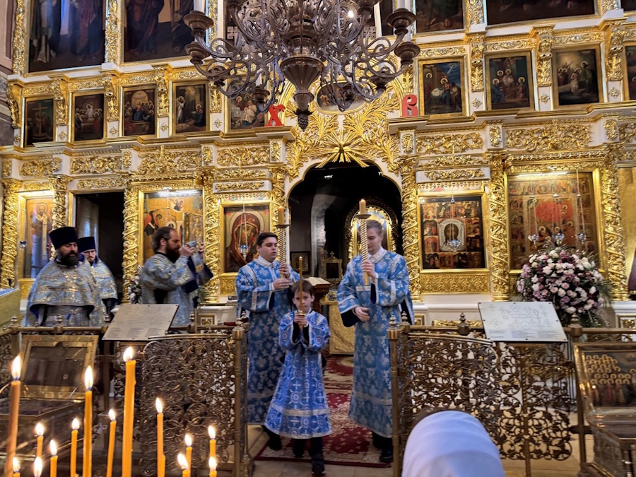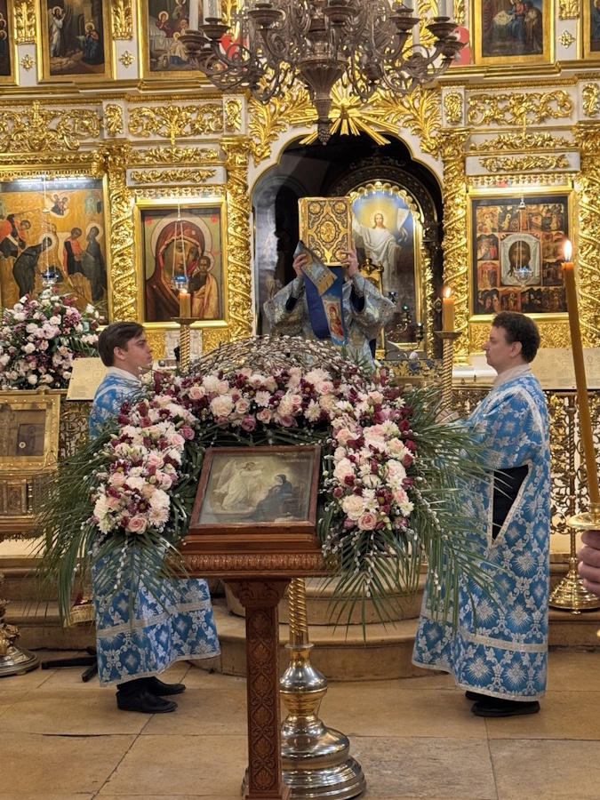 Праздничные песнопения, посвященные Царице Небесной, сочетаясь с богослужебными текстами Великого Вторника, создавали непередаваемую торжественно-умилительную молитвенную атмосферу.
