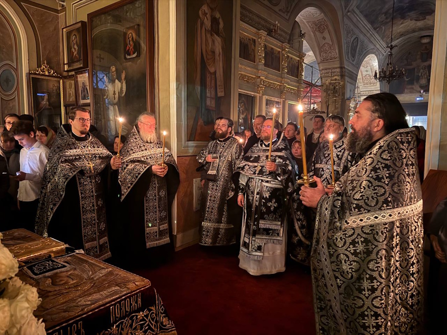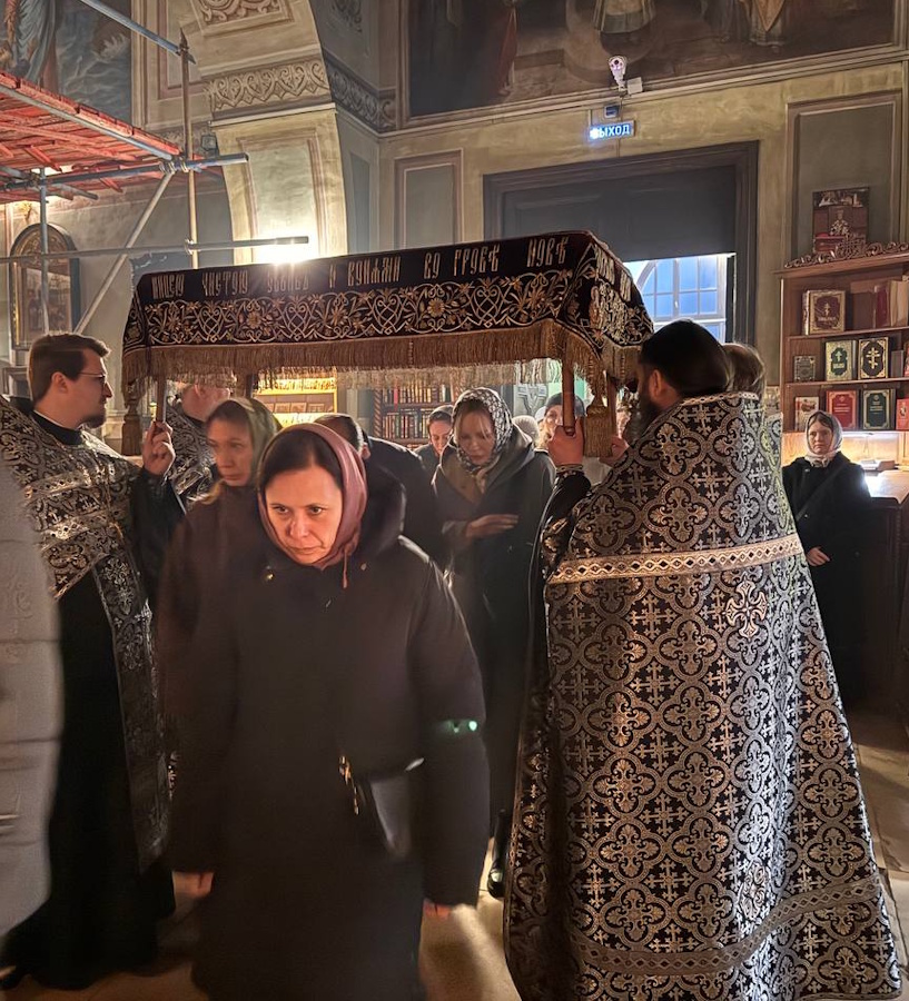 В отличающуюся своей строгостью Великую Пятницу в Обыденском храме прошли богослужения, на которых вспоминались святые, спасительные и страшные страдания и смерть Господа нашего Иисуса Христа, снятие со Креста Его тела и погребение.