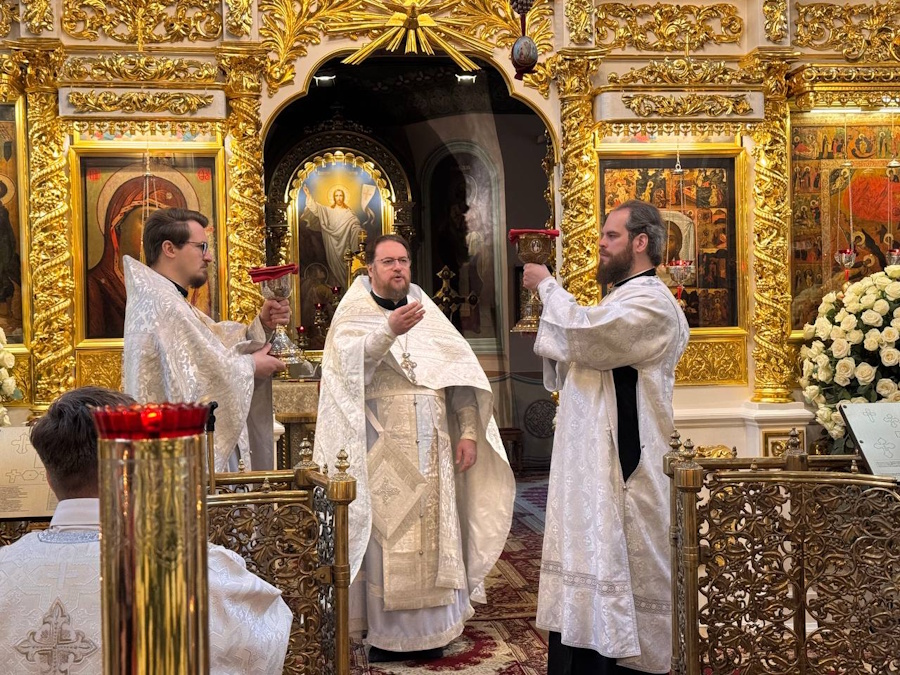 Проникновенной вечерней и Божественной литургией Великой Субботы завершились великопостные службы. Переходу от скорбно-торжественного настроения молящихся к предвосхищению радости грядущей Пасхи способствовали и богослужебные особенности этого дня, и переоблачение священства в светлые одежды, и обновленный иконостас, и храм, сияющий чистотой и предпраздничным убранством.