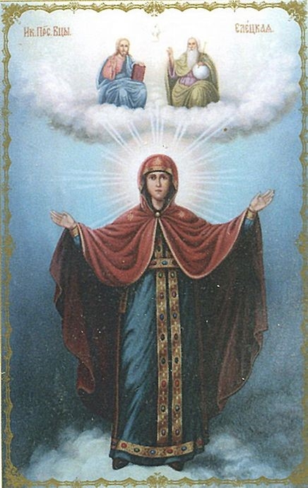 Об Елецком образе Божией Матери даже в просторах интернета не так уж много сведений, и они порой противоречивы. Известно по крайней мере три иконы с таким названием. Во-первых, Елецкая-Черниговская, обретенная, по преданию, в 1060 году преподобным Антонием Печерским на дереве, на ели. Поэтому-то она и обитель, в которую ее поставили, именуются Елецкими.