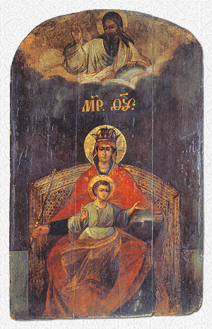 Образ написан в XVIII веке в период отхода от византийской традиции иконописания, ставшей и русской традицией. На наших старых иконах Богородица изображалась Царицей Царства, которое не от мiра сего, без земных знаков власти. Западноевропейская традиция, напротив, изображала Её как земную Царицу в силу объединения в католическом сознании власти земной и Небесной в лице главы Ватикана. Чудесным явлением освящено нетрадиционное изображение. Это показывает, что Пресвятая Дева Мария приняла на Себя управление воинствующей во Христе частью распавшейся надвое Российской Империи. Земная власть отделила Церковь от государства, лишила ее Патриарха и за ним Местоблюстителя Патриаршего Престола. Эту отделенную Русь, согласно тексту молитвы св. Патриарха Тихона, погруженную в немощь и скорбь душевную, в оскудение веры, отступление от заповедей Божиих, в разъединения и раздоры церковные, тогда приняла в управление Царица Небесная.