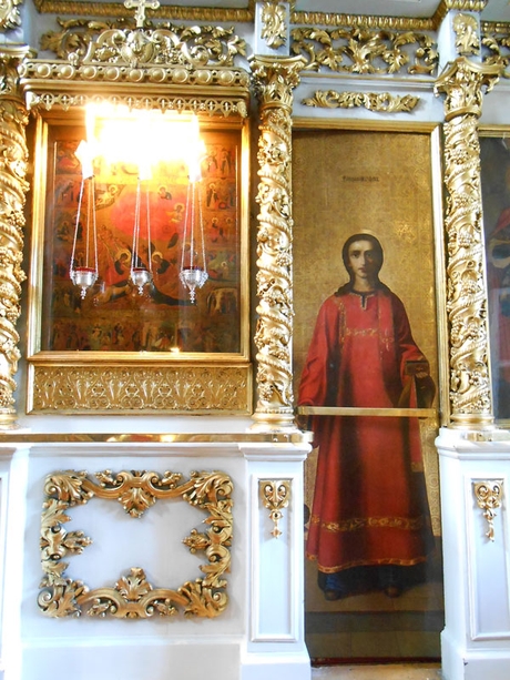 Почему боковые двери иконостаса называют диаконскими? Несомненно, это название указывает на то, что через них во время службы диаконы многократно выходят на солею для произнесения ектений. И, кроме того, чаще всего на них изображены святые архидиаконы. Вот и в главном иконостасе нашего храма мы видим иконы святых Лаврентия (на северной двери) и Стефана (на южной).